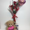 Hermoso arreglo con 12 rosas importadas, hipérico y una botella de Santa Ema de 750 cc