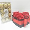 6 Rosas Preservadas en Caja Corazón y bombones Ferrero Rocher 100 grs