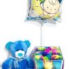 Cubo con 9 Rosas Arcoiris, Peluche colorido 19cm y Globito Niña