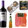 Espumante Opera Prima Blue, Surtido Serrano, Galletas Sin Gluten, Aceite y Pepinillos