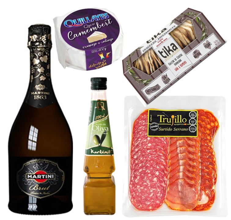 Martini, Jamón Serrano, Papas Artesanales, Galletas Crackers y Aceitunas
