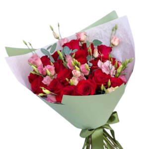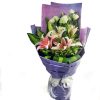 Delicados Lilium de 10 Varas envuelto en papel floral y combinada cinta de organza.