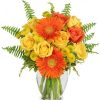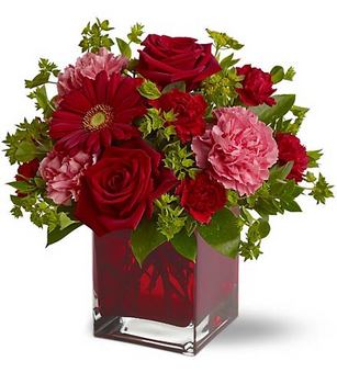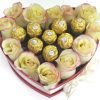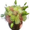 Florero de vidrio en forma de copa con lisianthus y rosas importadas
