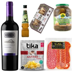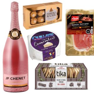 Vino Espumante 1.5 Litros , Queso camembert, Jamón Serrano, Bombones, Galletas Crackers Artesanales
